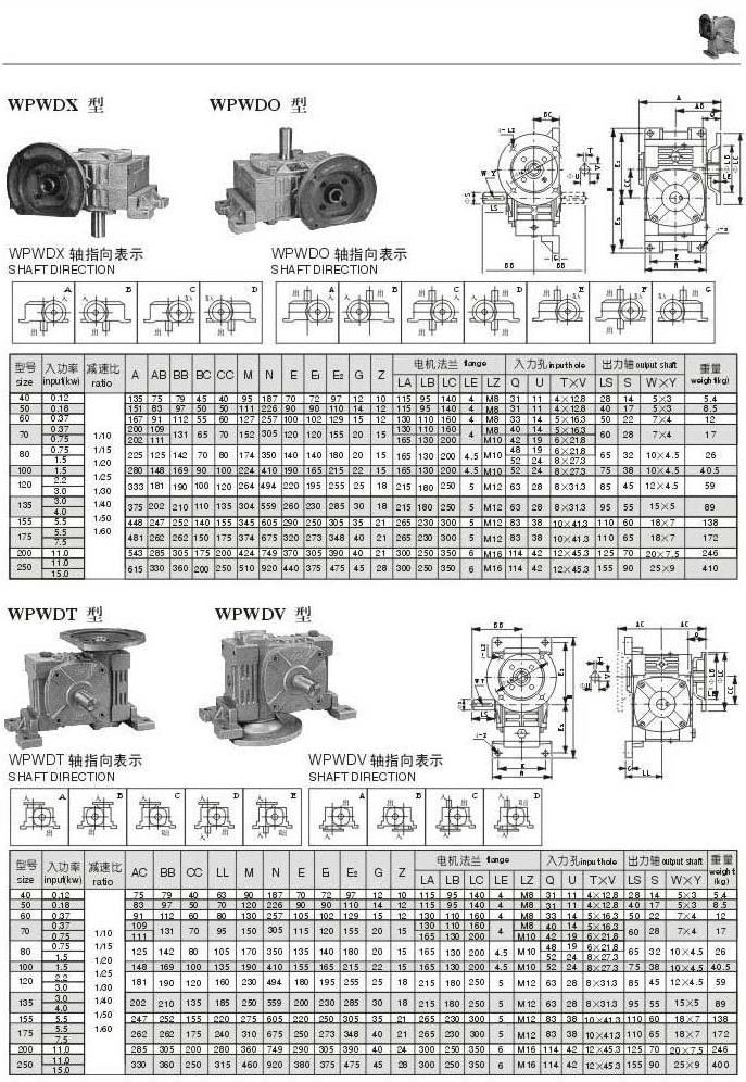 WPWDX,WPWDO,WPWDT,WPWDV型型號參數圖表