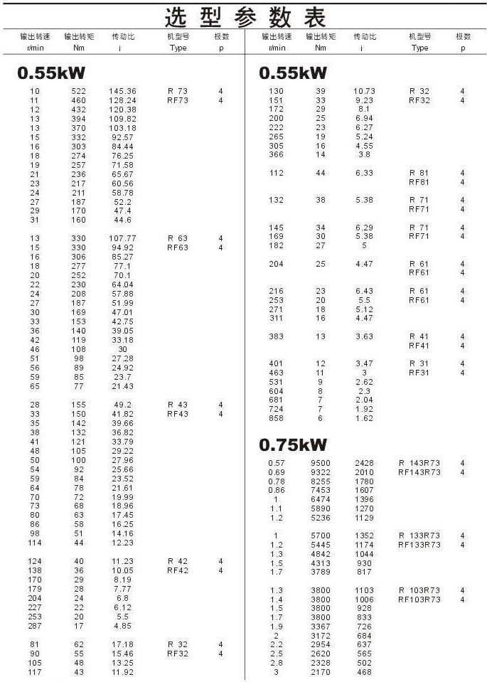 選型參數表0.55kW(續),0.75kW